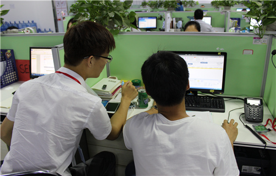 在工作岗位与同事交流探讨