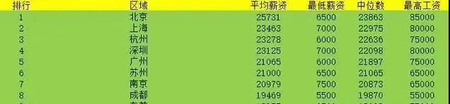 程序员工资收入城市排名