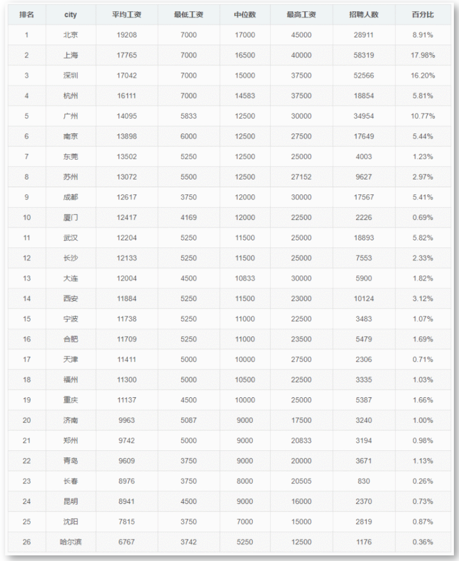 从统计来看,薪资较高的地区还是集中在北上广深杭等互联网发达地区,但像南京、成都、苏州、武汉、厦门等城市程序员的薪资也同样可观。