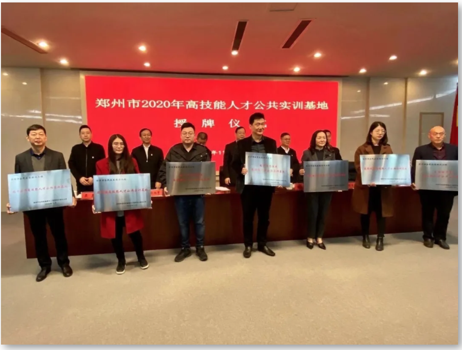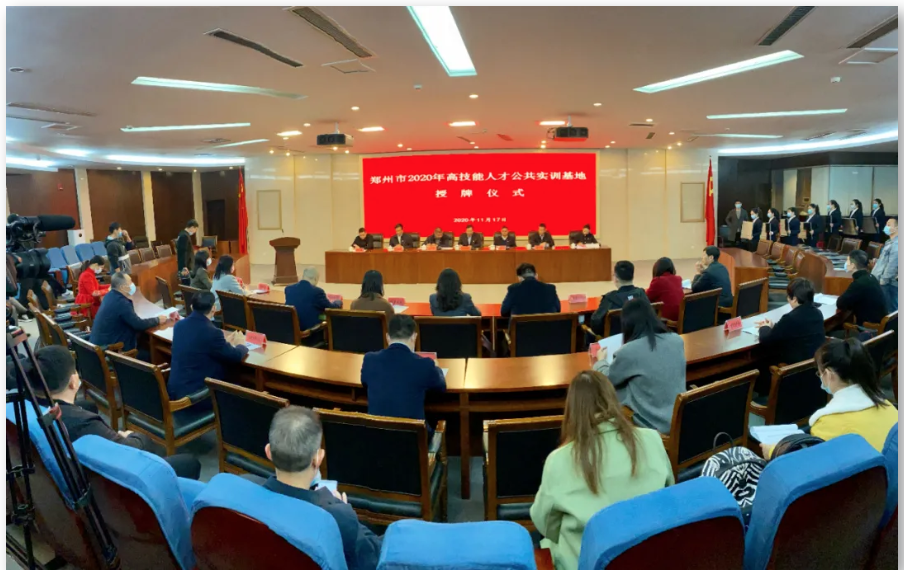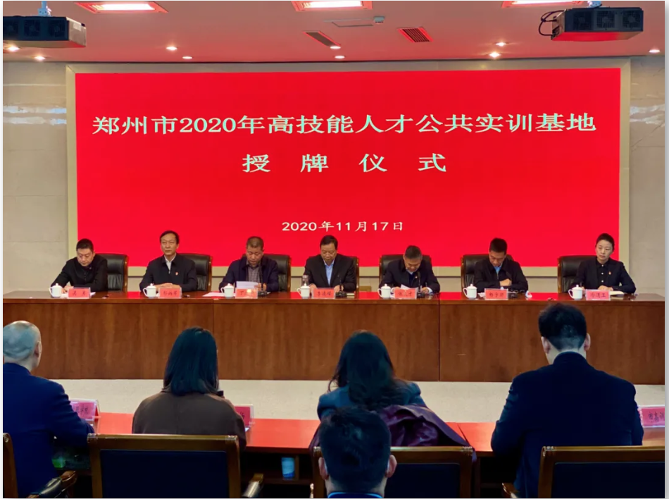 2020年11月17日上午,郑州市2020年高技能人才公共实训基地授牌仪式顺利举行。郑州市人力资源和社会保障局局长、党组书记李德耀,党组成员、调研员丁进芳等领导出席了授牌仪式。